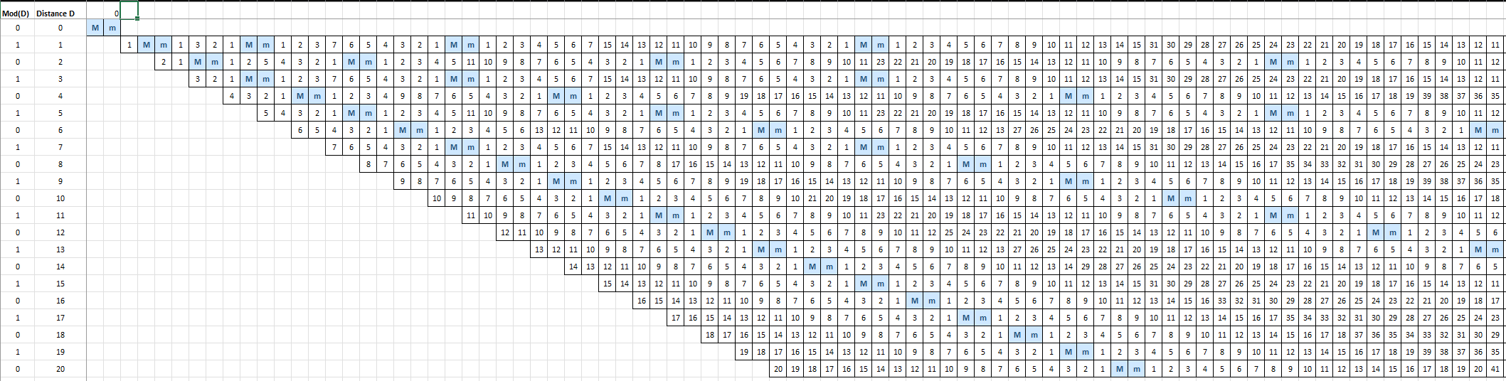 Now group indices by the “distance” D=n into a 5-point window