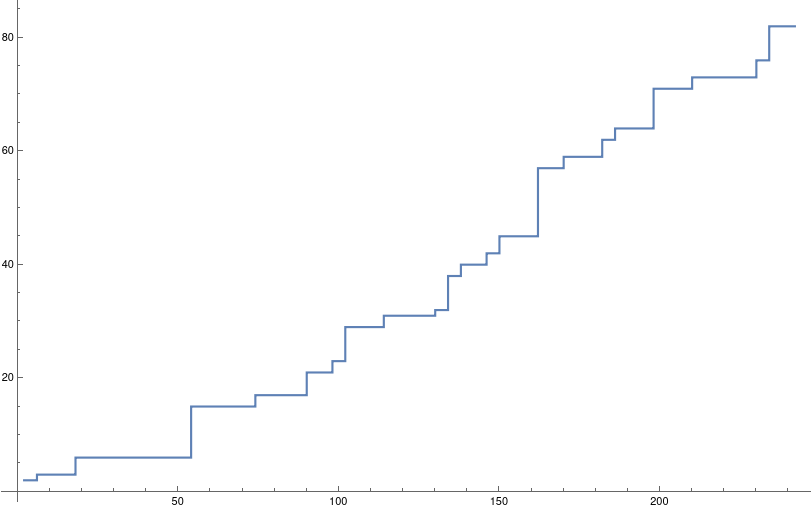 Given the extra freedom of rule T', maybe it’s possible to hit most of the numbers between 1 and M … but who knows. It’s doubtful that T' is more tractable to analyze than the regular Collatz rule, but it does generate data ![]()