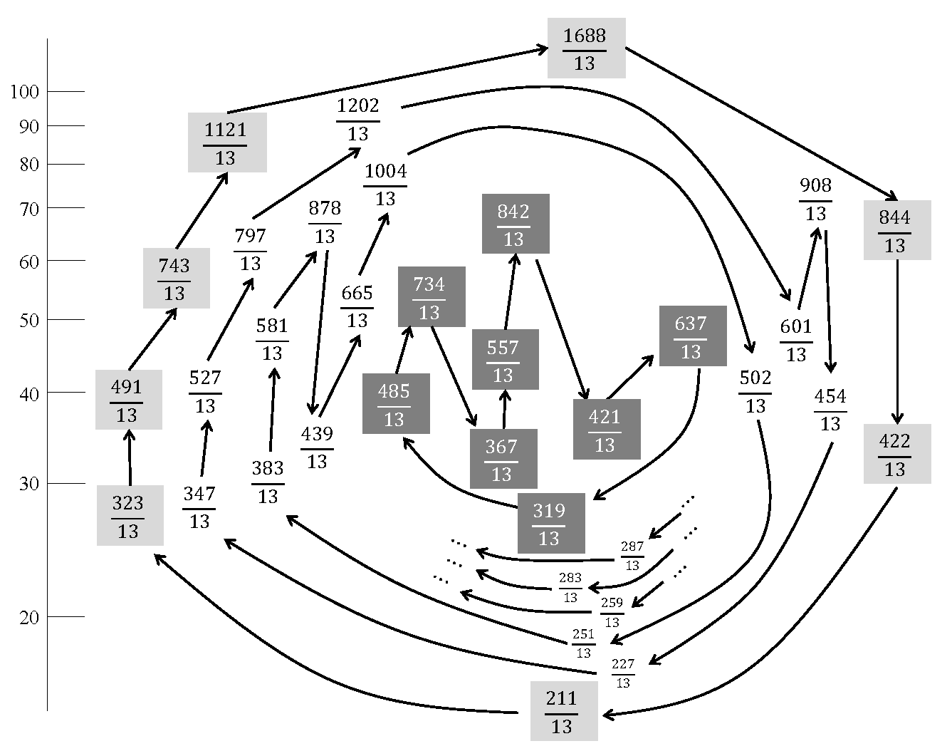 x_v=\dfrac{B(v)}{2^{l(v)}-3^{s(v)}}.