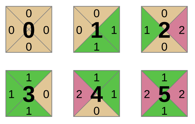 Each of these tiles corresponds to a base 6 digit, vertical sides speak in base 3 and horizontal sides speak in base 2. All corners but top-left are total and deterministic: